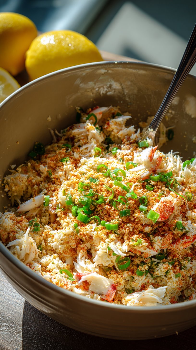 Don’t overmix—light mixing keeps the crab texture intact.