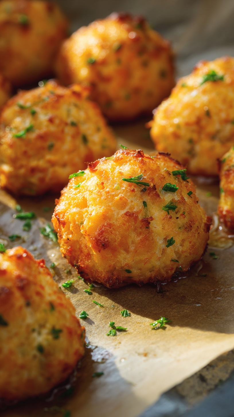 Place chilled crab bombs on sheet, drizzle with melted butter, and bake 15–18 minutes until golden brown and cooked through.