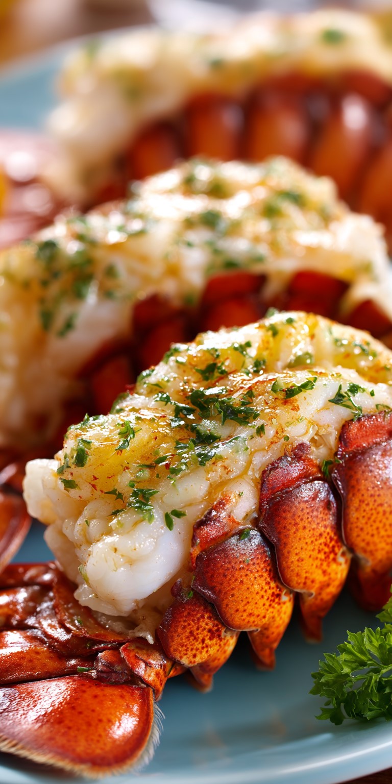 These baked lobster tails with garlic butter are tender, juicy, and infused with herbs and lemon for a luxurious meal.
