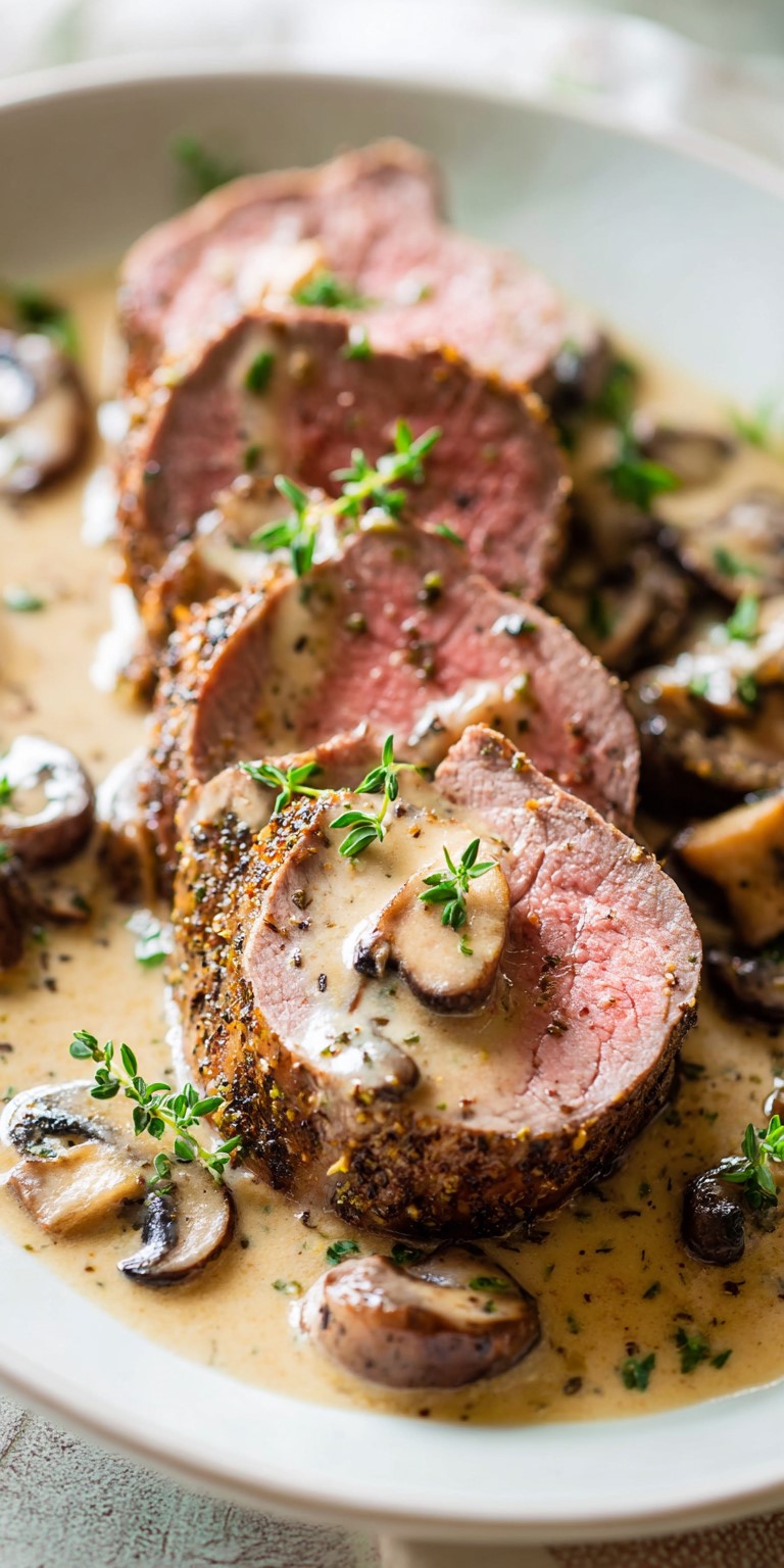 Juicy beef tenderloin paired with a creamy mushroom sauce creates a rich and comforting dinner that feels restaurant-quality at home. This dish is elegant enough for special occasions yet simple enough to prepare with confidence.