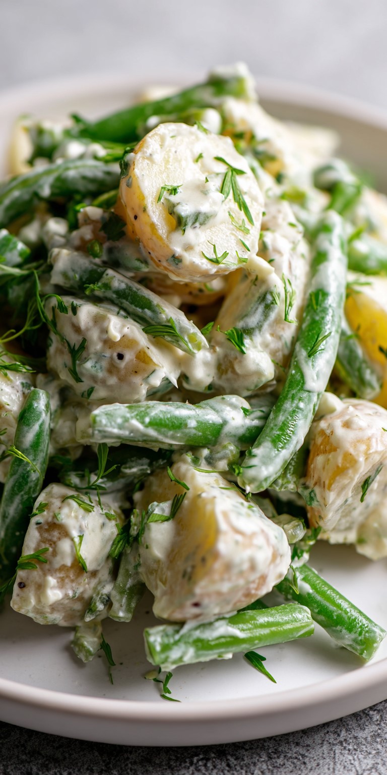 This creamy green bean potato salad is light yet satisfying, with tender potatoes, crisp green beans, and a tangy dressing that ties it all together.