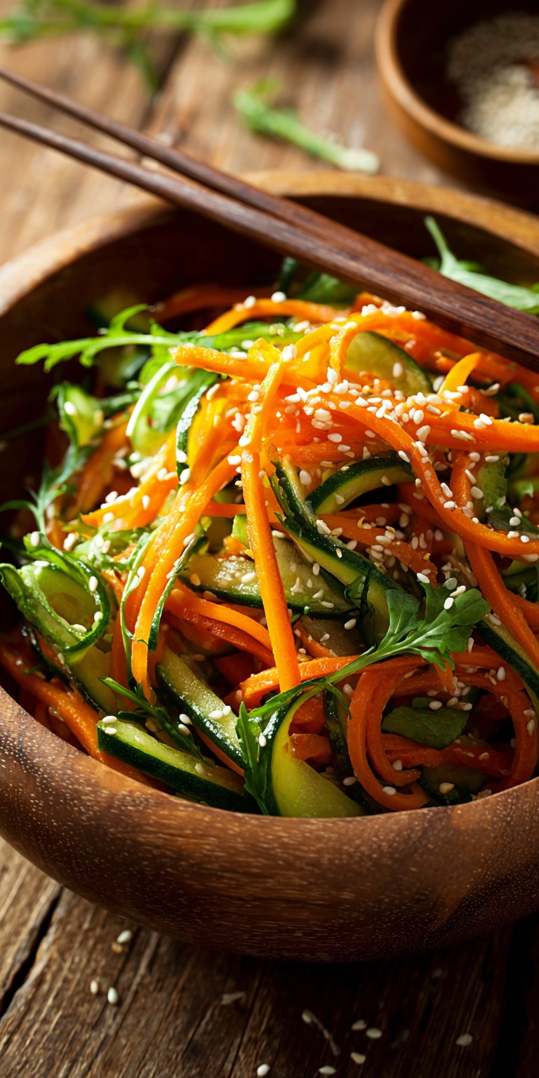 This cucumber carrot salad is light, crunchy, and brightened with a tangy-spicy dressing that makes every bite exciting.