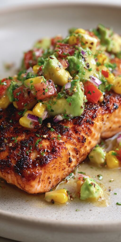 Juicy, spice-rubbed salmon pairs perfectly with a bright, zesty salsa for a balanced and flavorful meal.