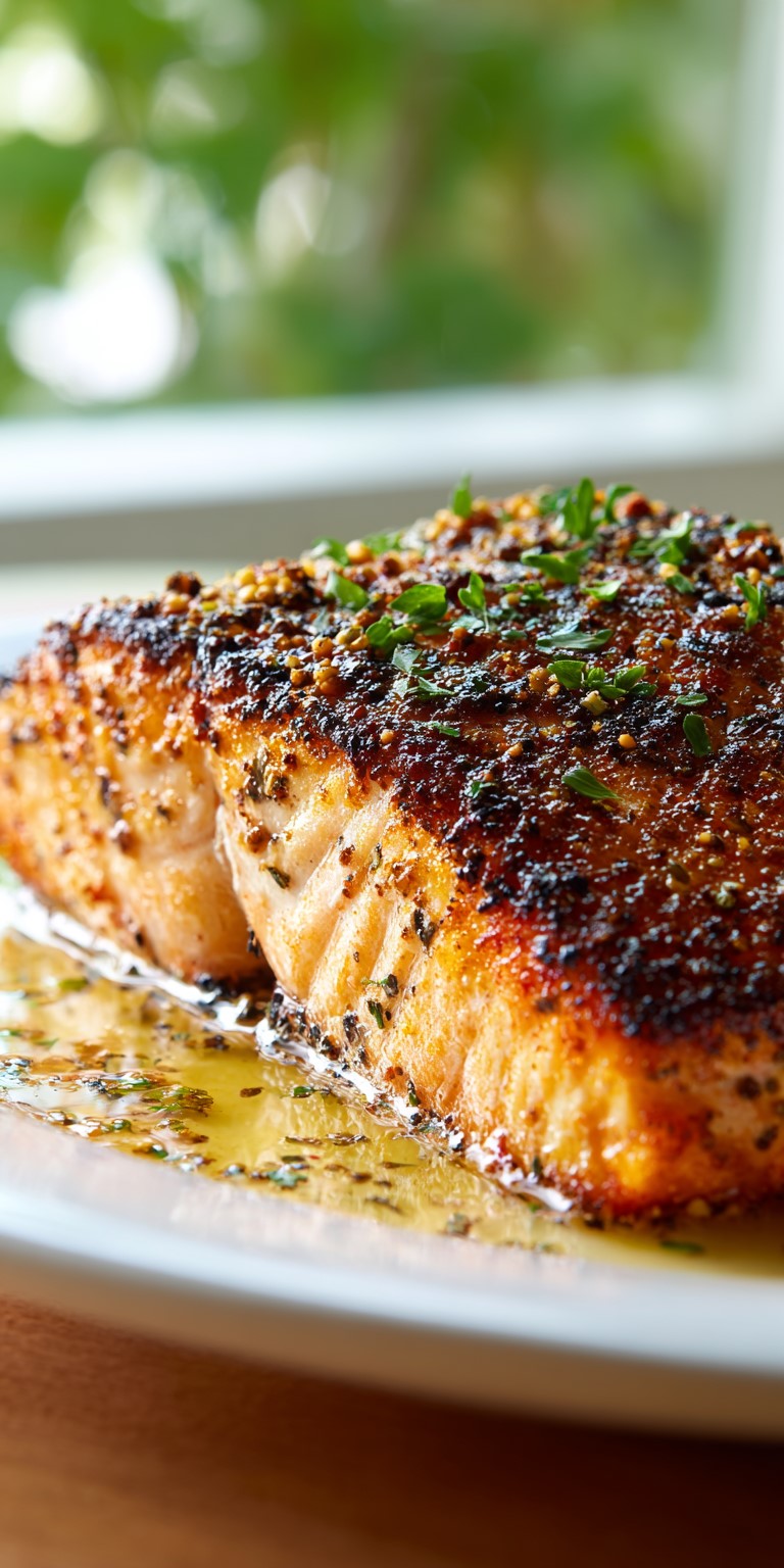 The house seasoning blend adds depth with garlic, herbs, and a hint of smokiness. It enhances the natural richness of the salmon.