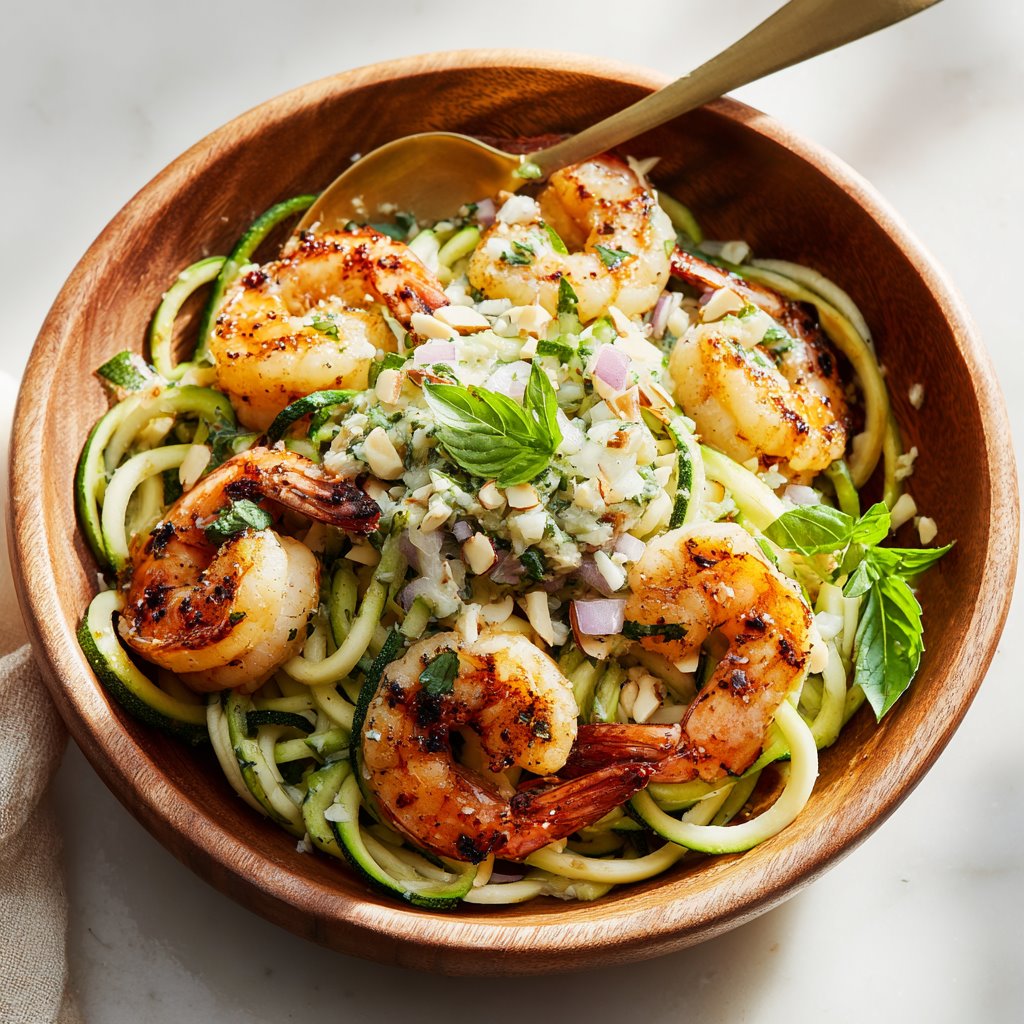 There’s something incredibly light yet satisfying about a meal that combines fresh vegetables with perfectly grilled shrimp. This dish brings together tender zucchini noodles and a bright basil-almond dressing for a refreshing, low-calorie dinner. It’s quick to prepare, full of flavor, and perfect for busy weeknights.