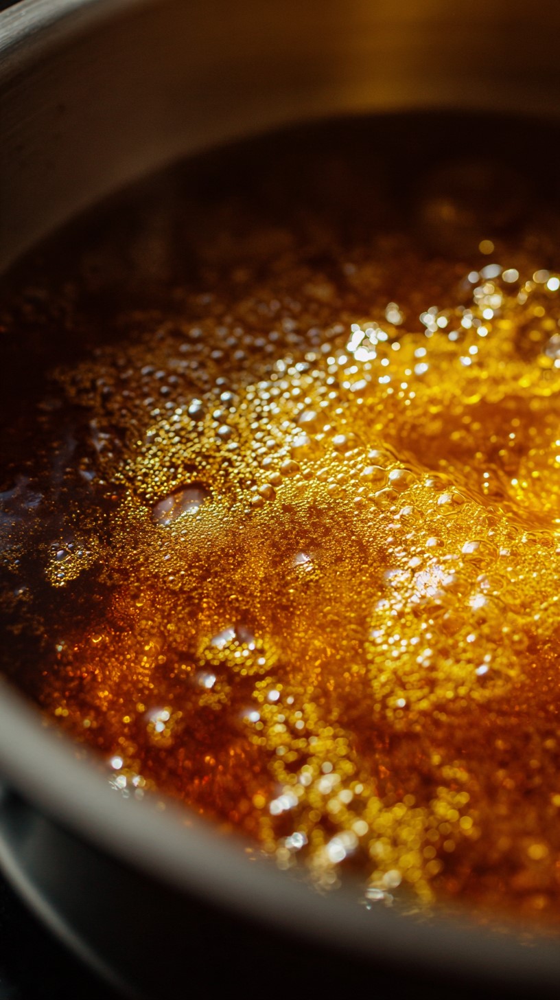 Stir constantly with a wooden spoon or whisk until the mixture turns a dark brown color, similar to melted chocolate.