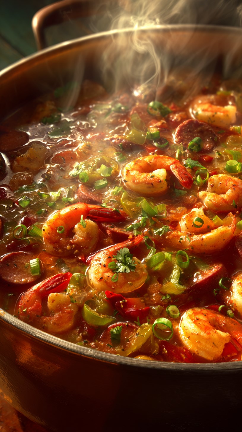 Made with a smoky roux, tender chicken, spicy Andouille sausage, and juicy shrimp, it’s the kind of meal that warms the heart and fills the house with comfort.