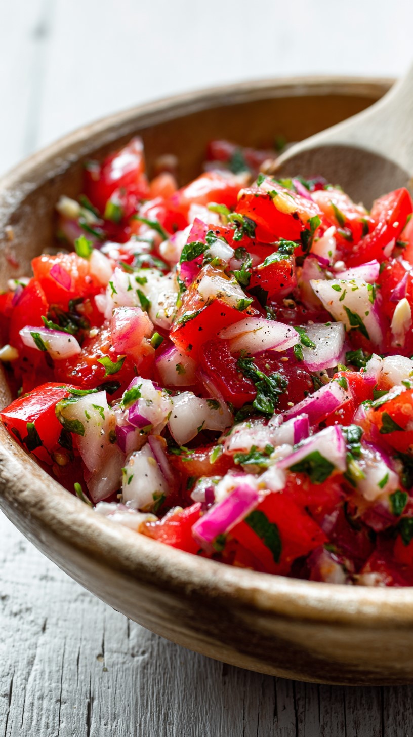 - Add onion, red bell pepper, parsley, lemon juice, mayo, salt, and pepper.