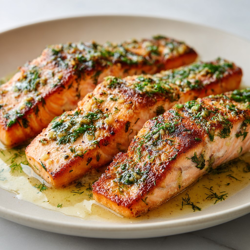 The lemon and garlic create a fresh, bright taste that pairs beautifully with tender salmon.