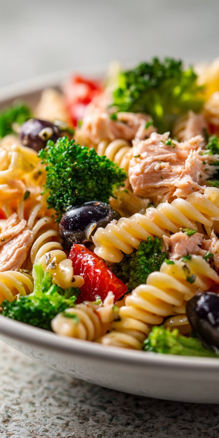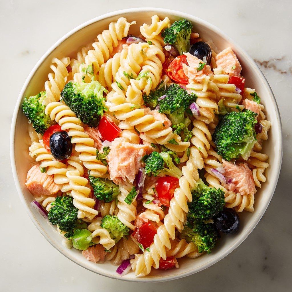 There’s something refreshing and hearty about pasta salad, especially when paired with tender, flaky salmon.