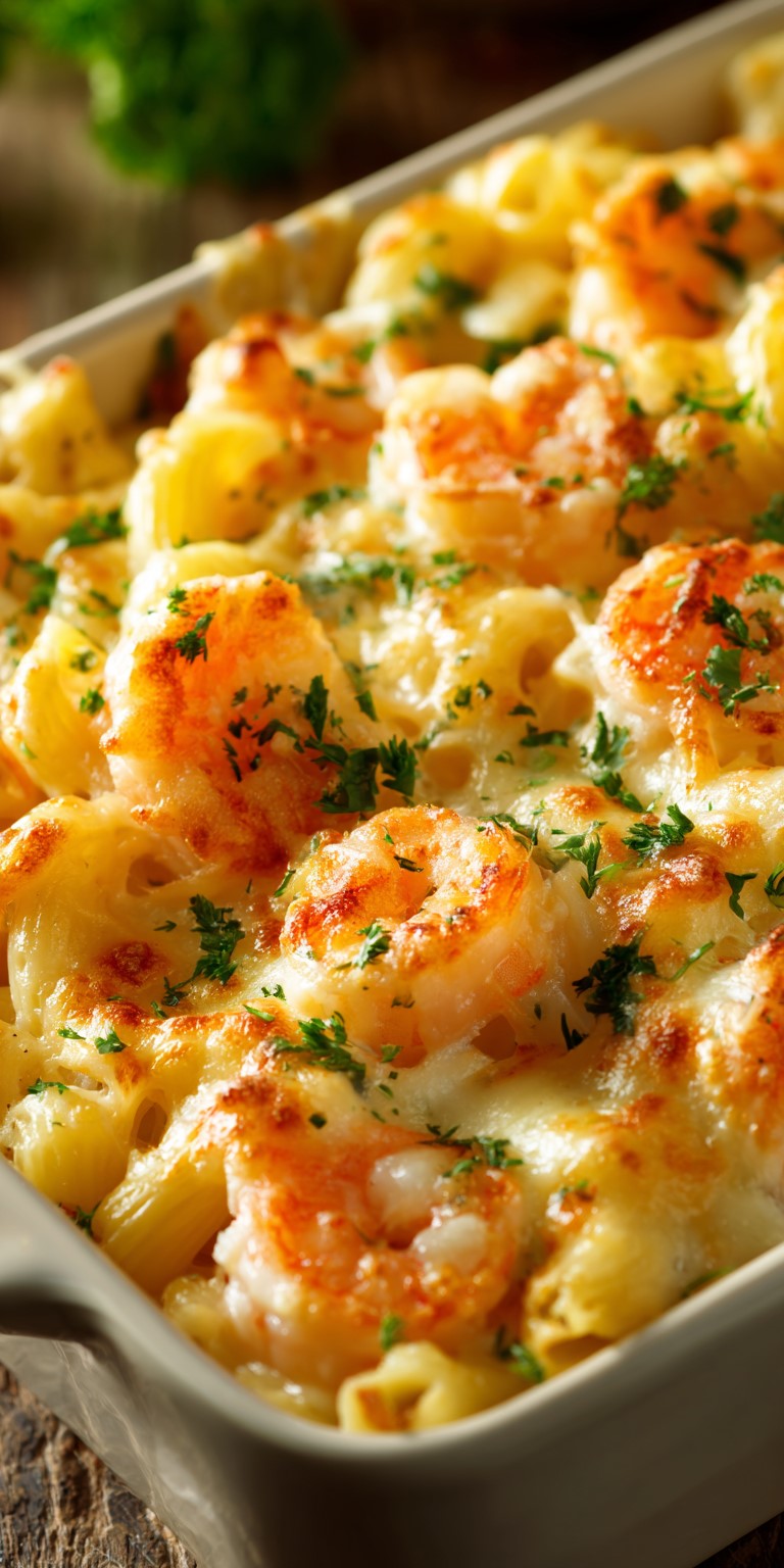 Shrimp scampi pasta bake is the perfect balance of fresh seafood, creamy sauce, and cheesy comfort.