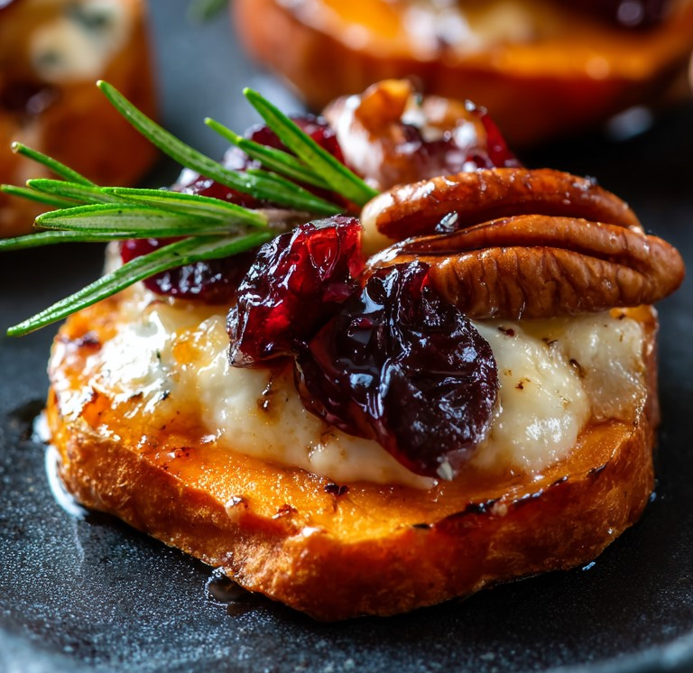 Sweet Potato Rounds with Brie, Cranberry & Pecans