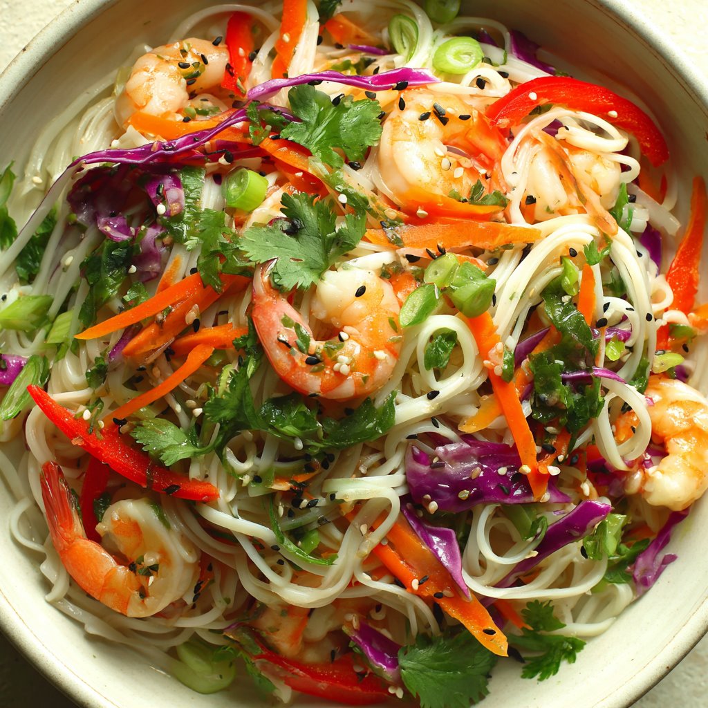It’s a refreshing mix of textures: chewy noodles, crunchy veggies, and tender shrimp.